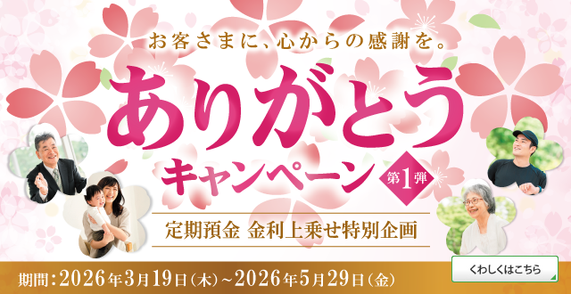 - 2026年03月18日 「~お客さまに、心からの感謝を~ありがとうキャンペーン-第1弾-」の実施について
